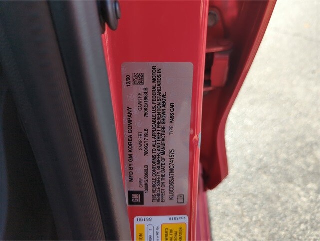 Certification Program Details: Certified Select Details: * Roadside Assistance * Limited Warranty: 6 Month/6,000 Mile (whichever comes first) from original in-service date * Warranty Deductible: $100 * Vehicles with less than 100,000 miles on odometer - GTR/NV not eligible. 1 prepaid service visit included with first year of ownership (excludes EVs). Certification Fee - Only $199. * Transferable Warranty * Vehicle History * 84 Point Inspection Odometer is 3456 miles below market average! Red Hot 30/38 City/Highway MPG 2021 Chevrolet Spark 1LT FWD CVT 1.4L DOHC