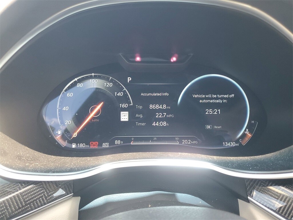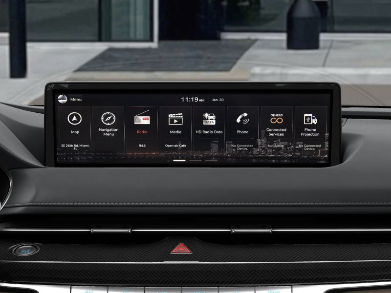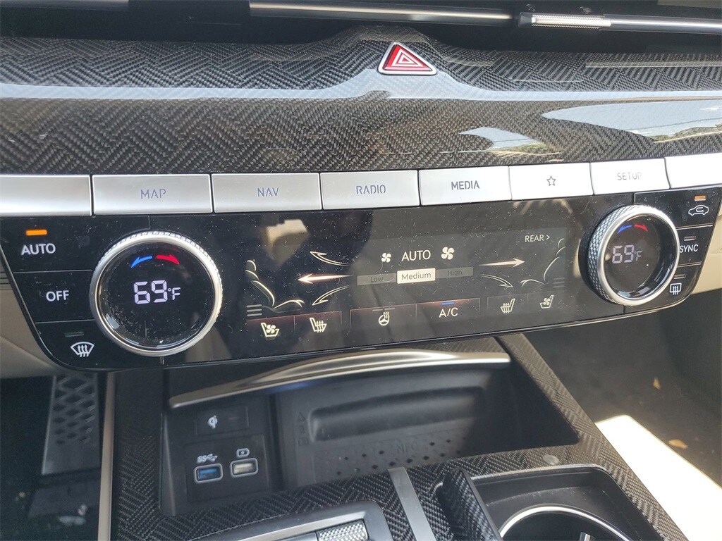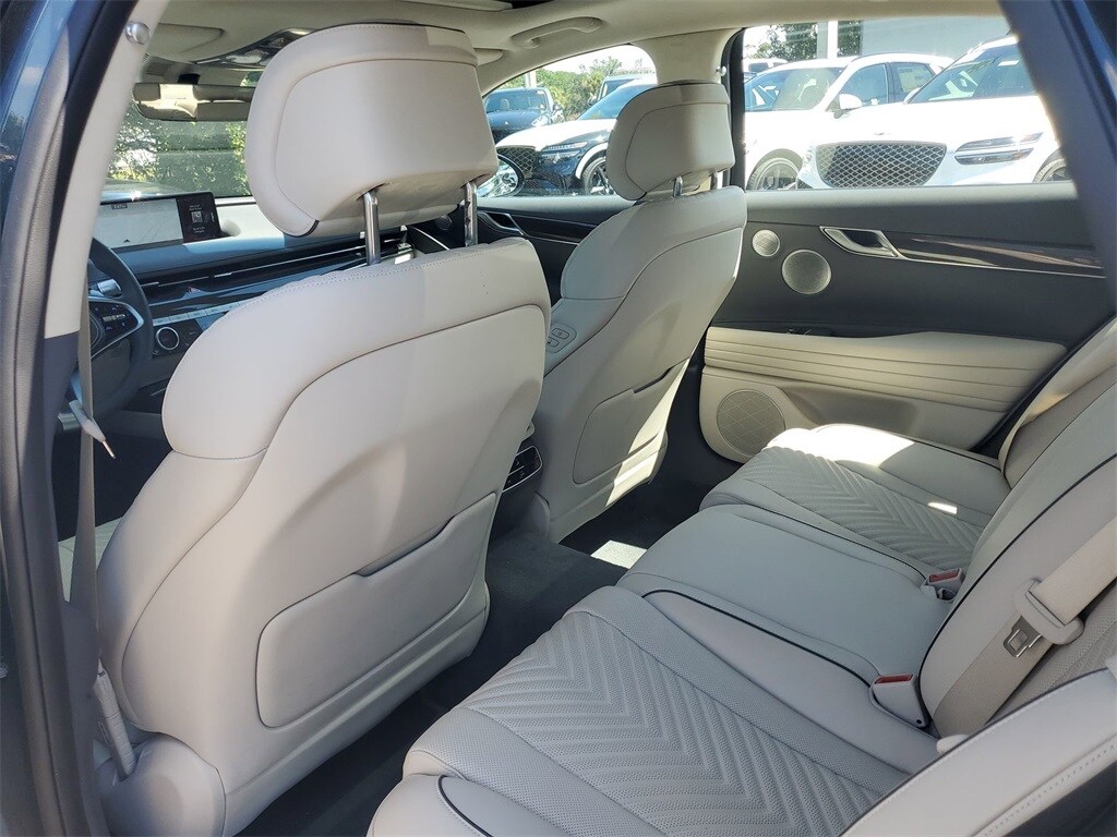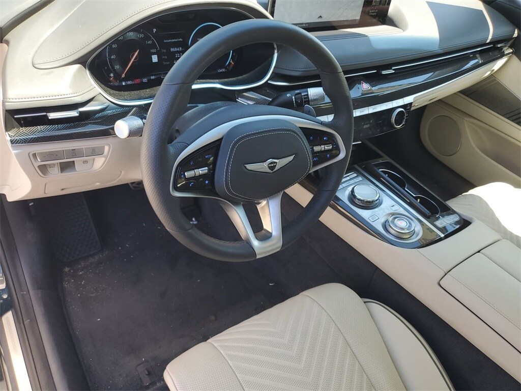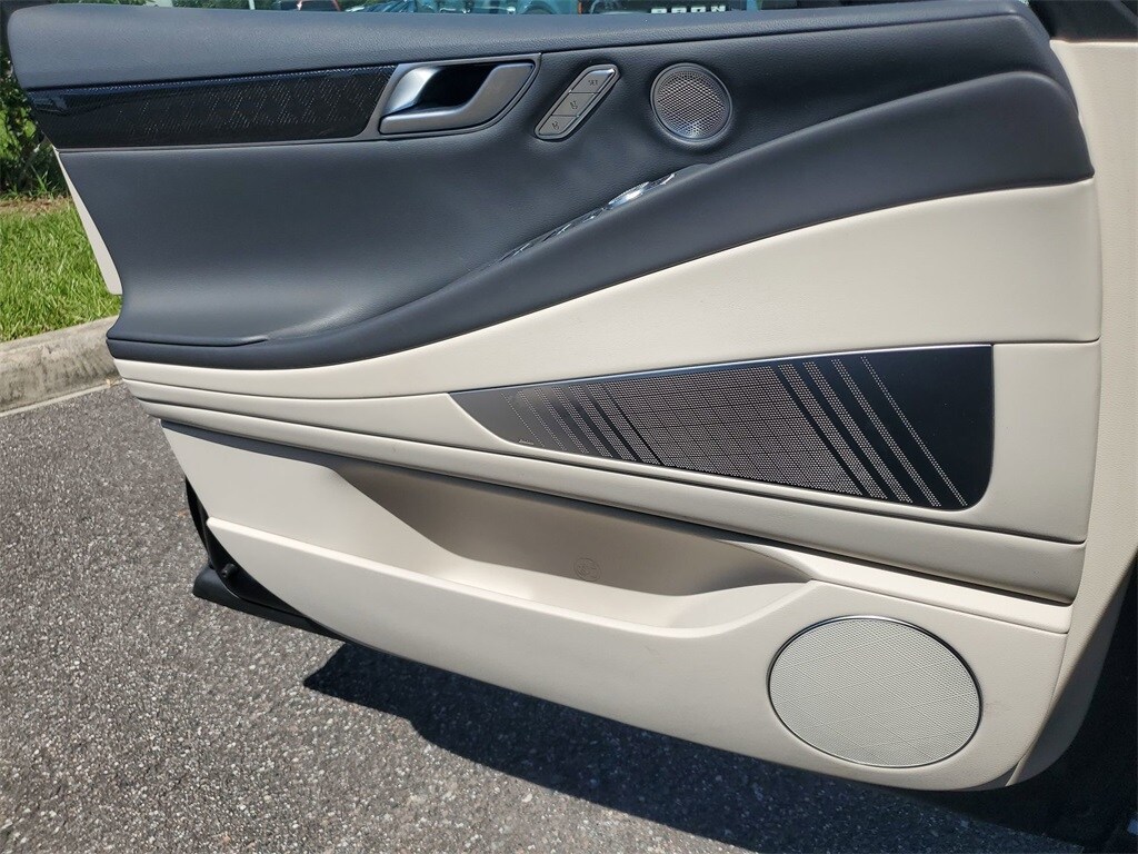 This vehicle comes equipped with Sport Prestige Package (12.3" 3D Digital Instrument Cluster, 3-Zone Climate Control, Advanced Rear Occupant Alert, Blind-Spot View Monitor, Carbon Fiber Trim, Driver Ergo Motion Seat, Driver Seat Power Bolster & Cushion Extension, Electronically Controlled Suspension, Forward Attention Warning, Front Passenger Seat Walk-In Device, Genesis Digital Key, Head-Up Display, Microfiber Suede Headliner & Pillars, Nappa Leather Seating Surfaces, Option Group 04, Option Group 05, Power Rear Sunshades, Radio: AM/FM/HD/SiriusXM Lexicon Audio System, Rear Wheel Steering, Remote Smart Parking Assist, Reverse Parking Collision - Avoidance Assist, Surround View Monitor, Wheels: 20"x8.5J Fr & 20"x9.5J Rr Sport Alloy, and Wireless Phone Charger), 12 Speakers, 4-Wheel Disc Brakes, ABS brakes, Adaptive suspension, Air Conditioning, Alloy wheels, AM/FM radio: SiriusXM, Android Auto & Apple CarPlay, Anti-whiplash front head restraints, Auto High-beam Headlights, Auto tilt-away steering wheel, Auto-dimming door mirrors, Auto-dimming Rear-View mirror, Automatic temperature control, Bumpers: body-color, Compass, Delay-off headlights, Driver door bin, Driver vanity mirror, Dual front impact airbags, Dual front side impact airbags, Electronic Stability Control, Emergency communication system: Genesis Connected Services, Exterior Parking Camera Rear, First Aid Kit, Four wheel independent suspension, Front anti-roll bar, Front Bucket Seats, Front Center Armrest, Front dual zone A/C, Front reading lights, Fully automatic headlights, Garage door transmitter: HomeLink, Heated & Ventilated Front Bucket Seats, Heated door mirrors, Heated front seats, Heated rear seats, Heated steering wheel, Illuminated entry, Knee airbag, Leather Seating Surfaces, Leather steering wheel, Low tire pressure warning, Memory seat, Navigation System, Occupant sensing airbag, Outside temperature display, Overhead airbag, Overhead console, Panic alarm, Passenger door bin, Passenger vanity mirror, Power door mirrors, Power driver seat, Power moonroof, Power passenger seat, Power steering, Power windows, Radio data system, Radio: AM/FM/HD/SiriusXM Audio System, Rain sensing wipers, Rear anti-roll bar, Rear Bumper Applique, Rear reading lights, Rear seat center armrest, Rear side impact airbag, Rear window defroster, Remote keyless entry, Security system, Speed control, Speed-sensing steering, Speed-Sensitive Wipers, Steering wheel memory, Steering wheel mounted audio controls, Tachometer, Telescoping steering wheel, Tilt steering wheel, Traction control, Trip computer, Turn signal indicator mirrors, Variably intermittent wipers, Ventilated front seats, and Wheels: 19"x8.5J Fr & 19"x9.5J Rr Sport Alloy .