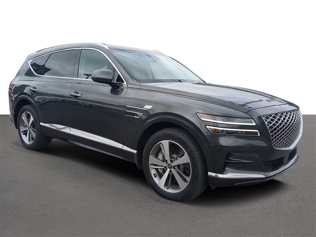 This vehicle comes equipped with Option Group 01, 12 Speakers, 3.909 Axle Ratio, 4-Wheel Disc Brakes, ABS brakes, Adaptive suspension, Air Conditioning, Alloy wheels, AM/FM radio: SiriusXM, Android Auto & Apple CarPlay, Anti-whiplash front head restraints, Auto High-beam Headlights, Auto tilt-away steering wheel, Auto-dimming door mirrors, Auto-dimming Rear-View mirror, Automatic temperature control, Brake assist, Bumpers: body-color, Compass, Delay-off headlights, Driver door bin, Driver vanity mirror, Dual front impact airbags, Dual front side impact airbags, Electronic Stability Control, Emergency communication system: Genesis Connected Services, Exterior Parking Camera Rear, First Aid Kit, Four wheel independent suspension, Front anti-roll bar, Front Bucket Seats, Front Center Armrest, Front dual zone A/C, Front reading lights, Fully automatic headlights, Garage door transmitter: HomeLink, Genuine wood console insert, Genuine wood dashboard insert, Genuine wood door panel insert, Heated & Ventilated Front Bucket Seats, Heated door mirrors, Heated front seats, Heated steering wheel, Illuminated entry, Knee airbag, Leather steering wheel, Leatherette Seating Surfaces, Low tire pressure warning, Memory seat, Mudguards, Nappa Leather Seating Surfaces, Navigation System, Occupant sensing airbag, Outside temperature display, Overhead airbag, Overhead console, Panic alarm, Passenger door bin, Passenger vanity mirror, Power door mirrors, Power driver seat, Power Liftgate, Power moonroof, Power passenger seat, Power steering, Power windows, Radio data system, Radio:14.5" Navigation System w/AM/FM/HD Radio, Rain sensing wipers, Rear air conditioning, Rear anti-roll bar, Rear Bumper Applique, Rear reading lights, Rear seat center armrest, Rear side impact airbag, Rear window defroster, Rear window wiper, Remote keyless entry, Reversible Cargo Tray, Security system, Speed control, Speed-sensing steering, Speed-Sensitive Wipers, Split folding rear seat, Spoiler, Steering wheel memory, Steering wheel mounted audio controls, Tachometer, Telescoping steering wheel, Tilt steering wheel, Traction control, Trip computer, Turn signal indicator mirrors, Variably intermittent wipers, Ventilated front seats, Wheel Locks, and Wheels: 20" x 8.5J Medium Metallic Gray Alloy .