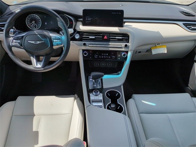 This vehicle comes equipped with Option Group 01, Genesis Certified, 4-Wheel Disc Brakes, 6 Speakers, ABS brakes, Air Conditioning, All Season Fitted Liners, Alloy wheels, AM/FM radio: SiriusXM, Android Auto & Apple CarPlay, Anti-whiplash front head restraints, Auto High-beam Headlights, Auto-dimming Rear-View mirror, Automatic temperature control, Brake assist, Bumpers: body-color, Delay-off headlights, Driver door bin, Driver vanity mirror, Dual front impact airbags, Dual front side impact airbags, Electronic Stability Control, Emergency communication system: Genesis Connected Services, Exterior Parking Camera Rear, First Aid Kit, Four wheel independent suspension, Front anti-roll bar, Front Bucket Seats, Front Center Armrest, Front dual zone A/C, Front reading lights, Fully automatic headlights, Garage door transmitter: HomeLink, Heated door mirrors, Heated front seats, Heated Multi-Adjustable Front Bucket Seats, Heated steering wheel, Illuminated entry, Knee airbag, Leather steering wheel, Leatherette Seating Surfaces, Low tire pressure warning, Navigation System, Occupant sensing airbag, Outside temperature display, Overhead airbag, Overhead console, Panic alarm, Passenger door bin, Passenger vanity mirror, Power door mirrors, Power driver seat, Power passenger seat, Power steering, Power windows, Radio: AM/FM/SiriusXM/HD Audio System, Rear anti-roll bar, Rear reading lights, Rear seat center armrest, Rear side impact airbag, Rear window defroster, Remote keyless entry, Reversible Cargo Tray, Security system, Speed control, Speed-Sensitive Wipers, Split folding rear seat, Steering wheel mounted audio controls, Tachometer, Telescoping steering wheel, Traction control, Trip computer, Turn signal indicator mirrors, Variably intermittent wipers, and Wheels: 19" x 8.0J Fr & 19" x 8.5J Rr Alloy .