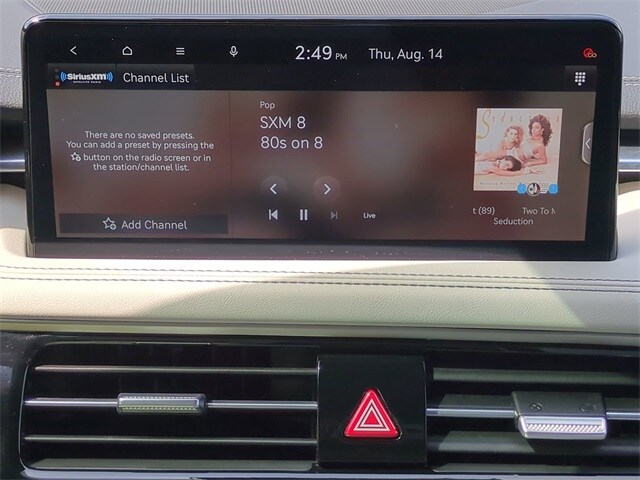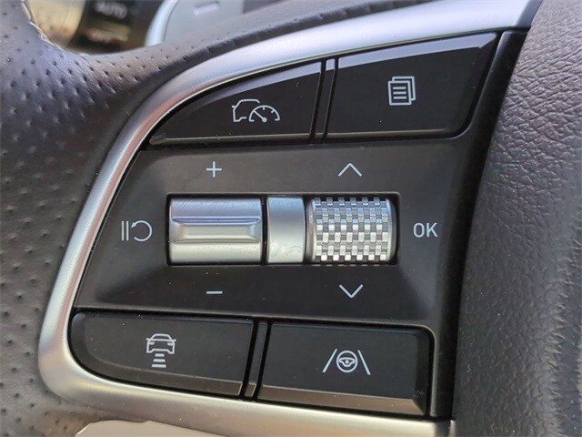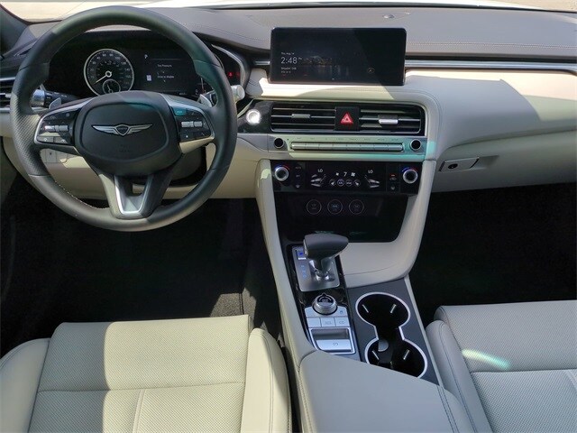 This vehicle comes equipped with Option Group 01, Genesis Certified, 4-Wheel Disc Brakes, 6 Speakers, ABS brakes, Air Conditioning, Alloy wheels, AM/FM radio: SiriusXM, Android Auto & Apple CarPlay, Anti-whiplash front head restraints, Auto High-beam Headlights, Auto-dimming Rear-View mirror, Automatic temperature control, Brake assist, Bumpers: body-color, Delay-off headlights, Driver door bin, Driver vanity mirror, Dual front impact airbags, Dual front side impact airbags, Electronic Stability Control, Emergency communication system: Genesis Connected Services, Exterior Parking Camera Rear, First Aid Kit, Four wheel independent suspension, Front anti-roll bar, Front Bucket Seats, Front Center Armrest, Front dual zone A/C, Front reading lights, Fully automatic headlights, Garage door transmitter: HomeLink, Heated door mirrors, Heated front seats, Heated Multi-Adjustable Front Bucket Seats, Illuminated entry, Knee airbag, Leather steering wheel, Leatherette Seating Surfaces, Low tire pressure warning, Mudguards, Navigation System, Occupant sensing airbag, Outside temperature display, Overhead airbag, Overhead console, Panic alarm, Passenger door bin, Passenger vanity mirror, Power door mirrors, Power driver seat, Power passenger seat, Power steering, Power windows, Radio: AM/FM/SiriusXM/HD Audio System, Rear anti-roll bar, Rear reading lights, Rear seat center armrest, Rear side impact airbag, Rear window defroster, Remote keyless entry, Reversible Cargo Tray, Roadside Assistance, Security system, Speed control, Speed-Sensitive Wipers, Split folding rear seat, Steering wheel mounted audio controls, Tachometer, Telescoping steering wheel, Traction control, Trip computer, Turn signal indicator mirrors, Variably intermittent wipers, and Wheels: 19" x 8.0J Fr & 19" x 8.5J Rr Alloy .