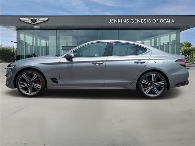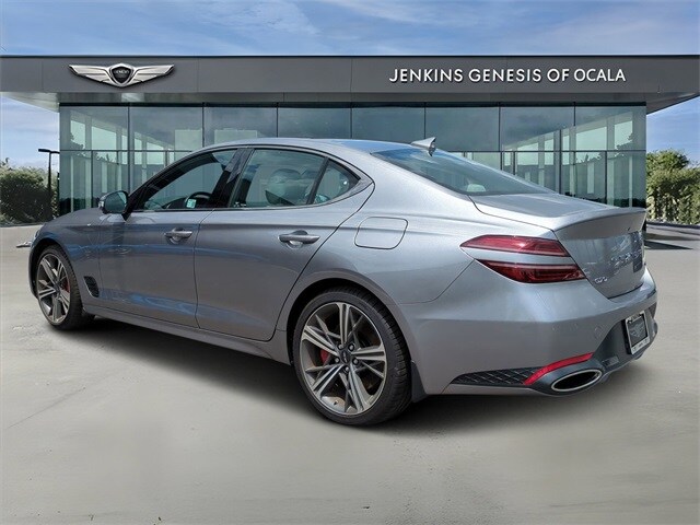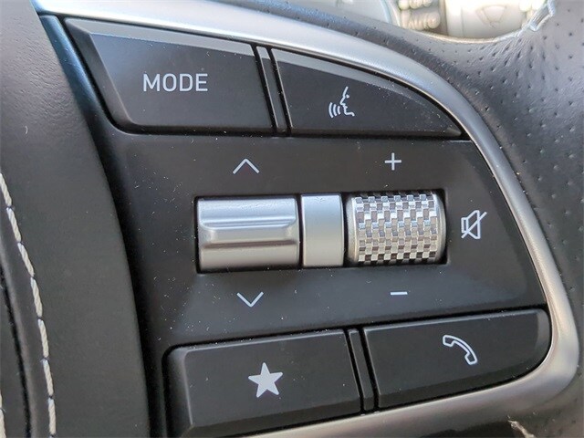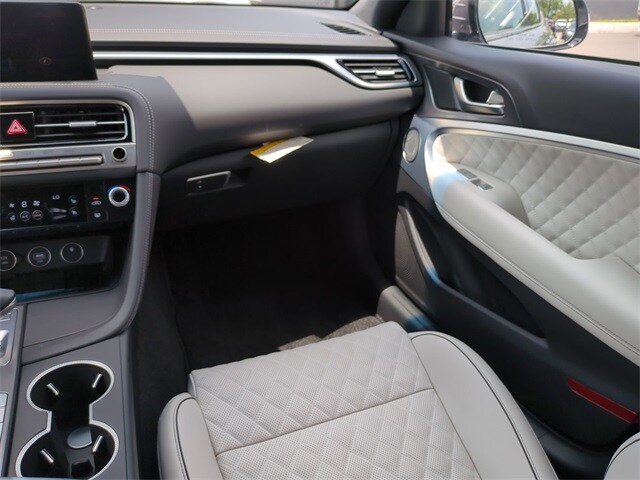 This vehicle comes equipped with Sport Prestige Package (Head-Up Display (HUD), Limited-Slip Differential, Nappa Leather Seating Surfaces, Option Group 04, and Power Trunk), Genesis Certified, 15 Speakers, 4-Wheel Disc Brakes, ABS brakes, Air Conditioning, All Season Fitted Liners, Alloy wheels, AM/FM radio: SiriusXM, Android Auto & Apple CarPlay, Anti-whiplash front head restraints, Auto High-beam Headlights, Auto-dimming door mirrors, Auto-dimming Rear-View mirror, Automatic temperature control, Brake assist, Bumpers: body-color, Delay-off headlights, Driver door bin, Driver vanity mirror, Dual front impact airbags, Dual front side impact airbags, Electronic Stability Control, Emergency communication system: Genesis Connected Services, Exterior Parking Camera Rear, First Aid Kit, Four wheel independent suspension, Front anti-roll bar, Front Bucket Seats, Front Center Armrest, Front dual zone A/C, Front reading lights, Fully automatic headlights, Garage door transmitter: HomeLink, Heated door mirrors, Heated front seats, Htd & Ventilated Multi-Adjustable Fr Bucket Seats, Illuminated entry, Knee airbag, Leather Seating Surfaces, Low tire pressure warning, Memory seat, Navigation System, Occupant sensing airbag, Outside temperature display, Overhead airbag, Overhead console, Panic alarm, Passenger door bin, Passenger vanity mirror, Power door mirrors, Power driver seat, Power moonroof, Power passenger seat, Power steering, Power windows, Radio: AM/FM/SiriusXM/HD Lexicon Prem Audio System, Rain sensing wipers, Rear anti-roll bar, Rear reading lights, Rear seat center armrest, Rear side impact airbag, Rear window defroster, Remote keyless entry, Reversible Cargo Tray, Security system, Speed control, Speed-sensing steering, Speed-Sensitive Wipers, Split folding rear seat, Steering wheel memory, Steering wheel mounted audio controls, Tachometer, Telescoping steering wheel, Traction control, Trip computer, Turn signal indicator mirrors, Variably intermittent wipers, Ventilated front seats, and Wheels: 19" x 8.0J Fr & 19" x 8.5J Rr Sport Alloy .