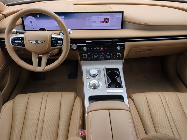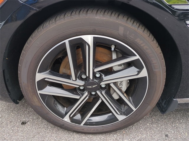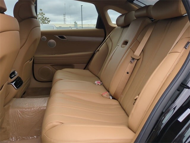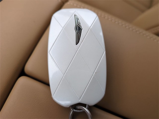This vehicle comes equipped with Option Group 01, Genesis Certified, 18 Speakers, 4-Wheel Disc Brakes, ABS brakes, Air Conditioning, Alloy wheels, AM/FM radio: SiriusXM, Android Auto & Apple CarPlay, Anti-whiplash front head restraints, Auto High-beam Headlights, Auto tilt-away steering wheel, Auto-dimming door mirrors, Auto-dimming Rear-View mirror, Automatic temperature control, Bumpers: body-color, Compass, Delay-off headlights, Driver door bin, Driver vanity mirror, Dual front impact airbags, Dual front side impact airbags, Electronic Stability Control, Emergency communication system: Genesis Connected Services, Exterior Parking Camera Rear, First Aid Kit, Four wheel independent suspension, Front anti-roll bar, Front Bucket Seats, Front Center Armrest, Front dual zone A/C, Front reading lights, Fully automatic headlights, Garage door transmitter: HomeLink, Genuine wood console insert, Genuine wood dashboard insert, Genuine wood door panel insert, Heated door mirrors, Heated front seats, Heated rear seats, Heated steering wheel, Illuminated entry, Knee airbag, Leather steering wheel, Leatherette Seating Surfaces, Low tire pressure warning, Memory seat, Mudguards, Navigation System, Occupant sensing airbag, Outside temperature display, Overhead airbag, Overhead console, Panic alarm, Passenger door bin, Passenger vanity mirror, Power door mirrors, Power driver seat, Power moonroof, Power passenger seat, Power steering, Power windows, Radio data system, Rain sensing wipers, Rear air conditioning, Rear anti-roll bar, Rear reading lights, Rear seat center armrest, Rear side impact airbag, Rear window defroster, Remote keyless entry, Security system, Speed control, Speed-sensing steering, Speed-Sensitive Wipers, Steering wheel memory, Steering wheel mounted audio controls, Tachometer, Telescoping steering wheel, Tilt steering wheel, Traction control, Trip computer, Turn signal indicator mirrors, Variably intermittent wipers, Ventilated front seats, and Wheel Locks .