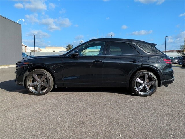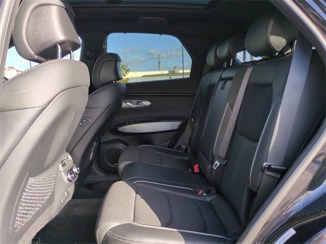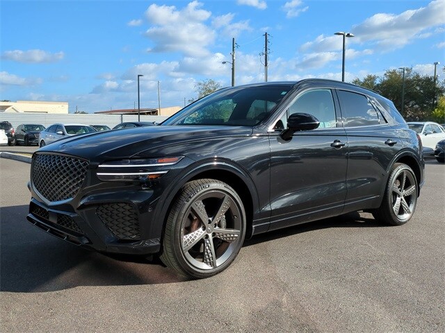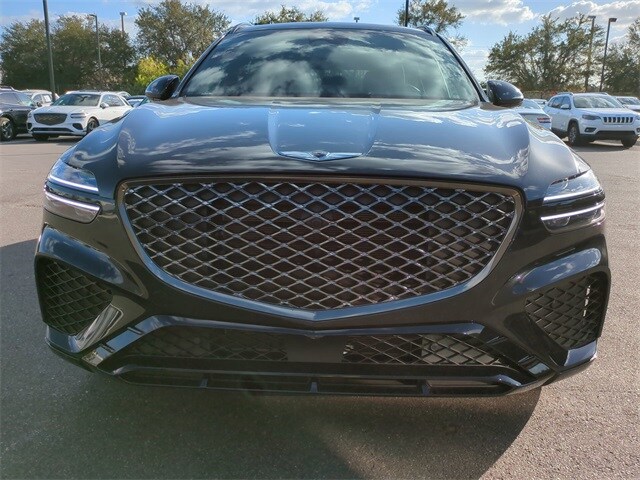 This vehicle comes equipped with Sport Prestige Package (12.3" 3D Digital Instrument Cluster, Forward Attention Warning, Genesis Digital Key, Manual Rear Door Shades, Option Group 04, and Ventilated Front Seats), Genesis Certified, 4-Wheel Disc Brakes, 9 Speakers, ABS brakes, Air Conditioning, Alloy wheels, AM/FM radio: SiriusXM, Android Auto & Apple CarPlay, Anti-whiplash front head restraints, Auto High-beam Headlights, Auto-dimming Rear-View mirror, Automatic temperature control, Brake assist, Bumpers: body-color, Cargo Cover, Cargo Net, Delay-off headlights, Driver door bin, Driver vanity mirror, Dual front impact airbags, Dual front side impact airbags, Electronic Stability Control, Emergency communication system: Genesis Connected Services, Exterior Parking Camera Rear, First Aid Kit, Four wheel independent suspension, Front anti-roll bar, Front Bucket Seats, Front Center Armrest w/Storage, Front dual zone A/C, Front reading lights, Fully automatic headlights, Garage door transmitter: HomeLink, Heated door mirrors, Heated Front Bucket Seats, Heated front seats, Illuminated entry, Knee airbag, Leather steering wheel, Leatherette Seating Surfaces, Low tire pressure warning, Navigation System, Occupant sensing airbag, Outside temperature display, Overhead airbag, Overhead console, Panic alarm, Passenger door bin, Passenger vanity mirror, Power door mirrors, Power driver seat, Power Liftgate, Power passenger seat, Power steering, Power windows, Radio: 14.5" Navigation System w/AM/FM/HD Radio, Rain sensing wipers, Rear anti-roll bar, Rear Parking Sensors, Rear reading lights, Rear seat center armrest, Rear window defroster, Rear window wiper, Remote keyless entry, Reversible Cargo Tray, Security system, Speed control, Speed-sensing steering, Speed-Sensitive Wipers, Split folding rear seat, Spoiler, Steering wheel mounted audio controls, Tachometer, Telescoping steering wheel, Tow Hitch, Traction control, Trip computer, Turn signal indicator mirrors, Variably intermittent wipers, and Wheels: 19" Dark Hyper Silver Alloy .