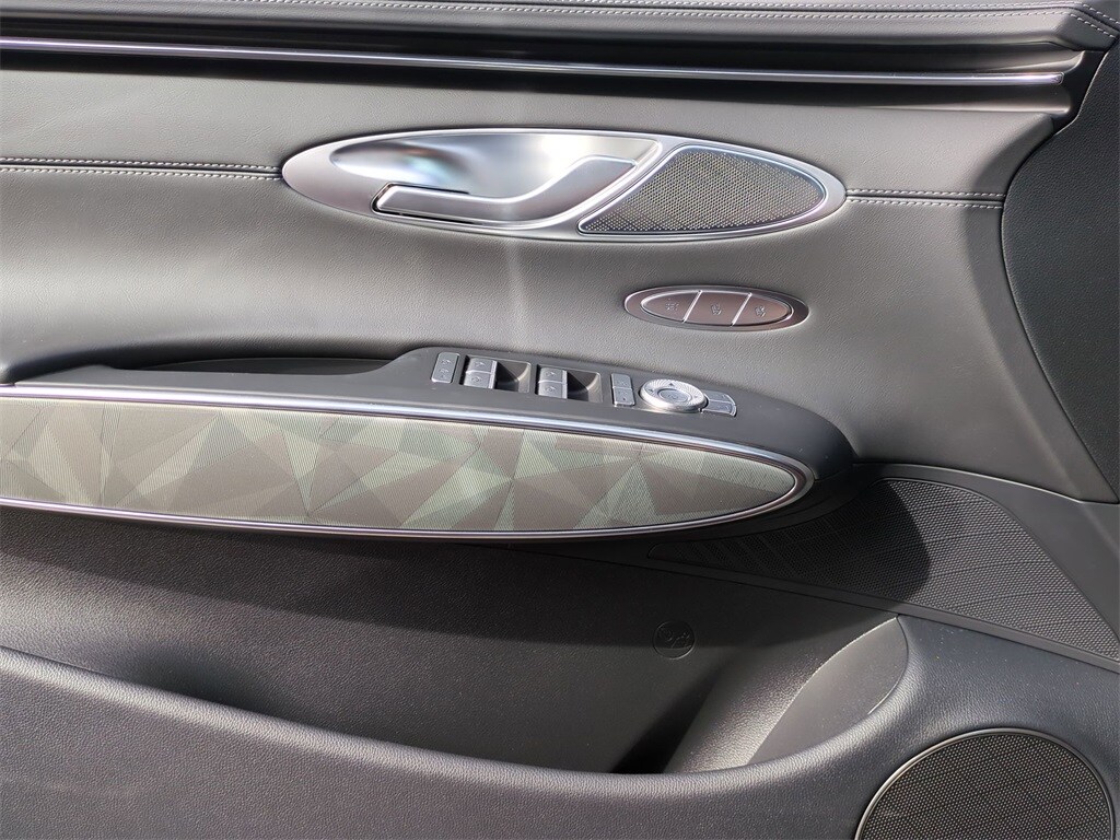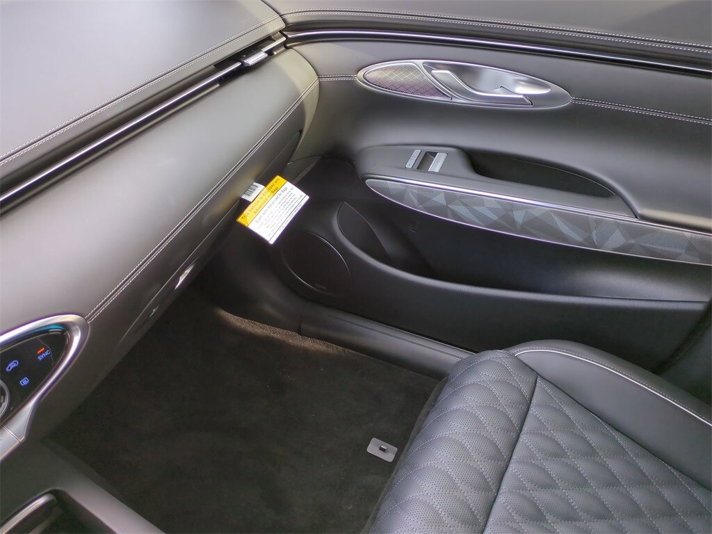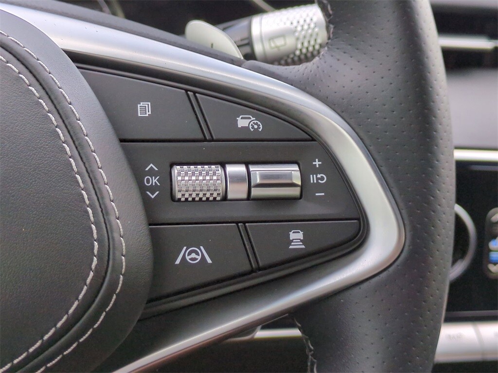 This vehicle comes equipped with Sport Advanced Package, 4-Wheel Disc Brakes, 9 Speakers, ABS brakes, Adaptive suspension, Air Conditioning, Alloy wheels, AM/FM radio: SiriusXM, Android Auto & Apple CarPlay, Anti-whiplash front head restraints, Auto High-beam Headlights, Auto-dimming door mirrors, Auto-dimming Rear-View mirror, Automatic temperature control, Brake assist, Bumpers: body-color, Cargo Cover, Cargo Net, Delay-off headlights, Driver door bin, Driver vanity mirror, Dual front impact airbags, Dual front side impact airbags, Electronic Stability Control, Emergency communication system: Genesis Connected Services, Exterior Parking Camera Rear, First Aid Kit, Four wheel independent suspension, Front anti-roll bar, Front Bucket Seats, Front Center Armrest w/Storage, Front dual zone A/C, Front reading lights, Fully automatic headlights, Garage door transmitter: HomeLink, Heated & Ventilated Front Bucket Seats, Heated door mirrors, Heated front seats, Heated steering wheel, Illuminated Door Scuff Plates, Illuminated entry, Knee airbag, Leather Seating Surfaces w/Mesh Insert, Leather steering wheel, Low tire pressure warning, Memory seat, Navigation System, Occupant sensing airbag, Outside temperature display, Overhead airbag, Overhead console, Panic alarm, Passenger door bin, Passenger vanity mirror, Power door mirrors, Power driver seat, Power Liftgate, Power moonroof, Power passenger seat, Power steering, Power windows, Radio: 14.5" Navigation System w/AM/FM/HD Radio, Rain sensing wipers, Rear anti-roll bar, Rear Parking Sensors, Rear reading lights, Rear seat center armrest, Rear window defroster, Rear window wiper, Remote keyless entry, Reversible Cargo Tray, Security system, Speed control, Speed-sensing steering, Speed-Sensitive Wipers, Split folding rear seat, Spoiler, Steering wheel memory, Steering wheel mounted audio controls, Tachometer, Telescoping steering wheel, Traction control, Trip computer, Turn signal indicator mirrors, Variably intermittent wipers, Ventilated front seats, Wheel Locks, and Wheels: 19" Dark Hyper Silver Sport Alloy .