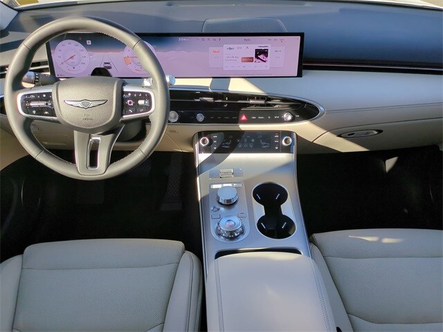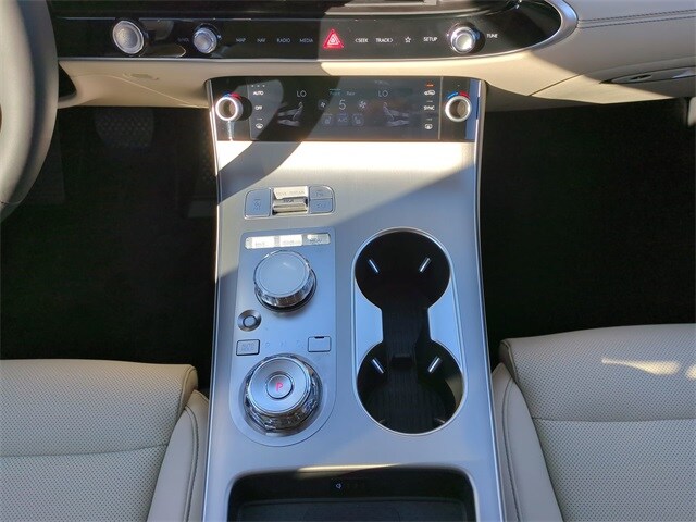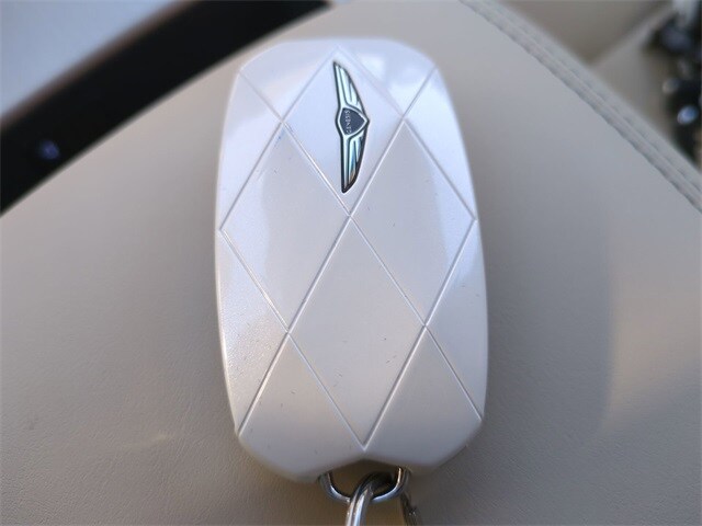 This vehicle comes equipped with Option Group 01, Genesis Certified, 4-Wheel Disc Brakes, 9 Speakers, ABS brakes, Air Conditioning, Alloy wheels, AM/FM radio: SiriusXM, Android Auto & Apple CarPlay, Anti-whiplash front head restraints, Auto High-beam Headlights, Auto-dimming door mirrors, Auto-dimming Rear-View mirror, Automatic temperature control, Brake assist, Bumpers: body-color, Cargo Cover, Cargo Tray, Delay-off headlights, Driver door bin, Driver vanity mirror, Dual front impact airbags, Dual front side impact airbags, Electronic Stability Control, Emergency communication system: Genesis Connected Services, Exterior Parking Camera Rear, Four wheel independent suspension, Front anti-roll bar, Front Bucket Seats, Front Center Armrest w/Storage, Front dual zone A/C, Front reading lights, Fully automatic headlights, Garage door transmitter: HomeLink, Heated door mirrors, Heated Front Bucket Seats, Heated front seats, Illuminated entry, Knee airbag, Leather steering wheel, Leatherette Seating Surfaces, Low tire pressure warning, Memory seat, Navigation System, Occupant sensing airbag, Outside temperature display, Overhead airbag, Overhead console, Panic alarm, Passenger door bin, Passenger vanity mirror, Power door mirrors, Power driver seat, Power Liftgate, Power moonroof, Power passenger seat, Power steering, Power windows, Radio: 14.5" Navigation System with AM/FM/HD, Rain sensing wipers, Rear anti-roll bar, Rear reading lights, Rear seat center armrest, Rear window defroster, Rear window wiper, Remote keyless entry, Security system, Speed control, Speed-sensing steering, Speed-Sensitive Wipers, Split folding rear seat, Spoiler, Steering wheel memory, Steering wheel mounted audio controls, Tachometer, Telescoping steering wheel, Tilt steering wheel, Traction control, Trip computer, Turn signal indicator mirrors, Variably intermittent wipers, and Wheels: 19" Light Hyper Silver Alloy .