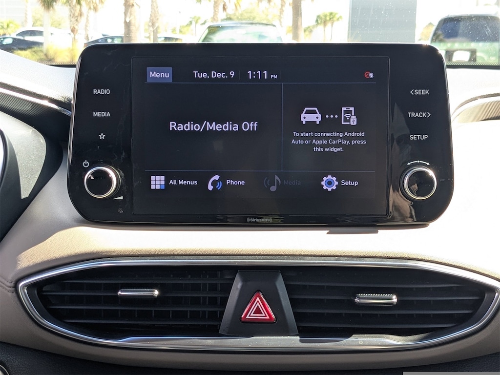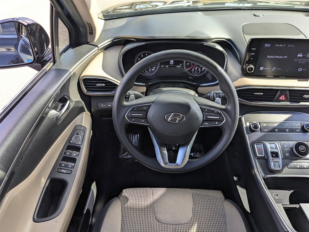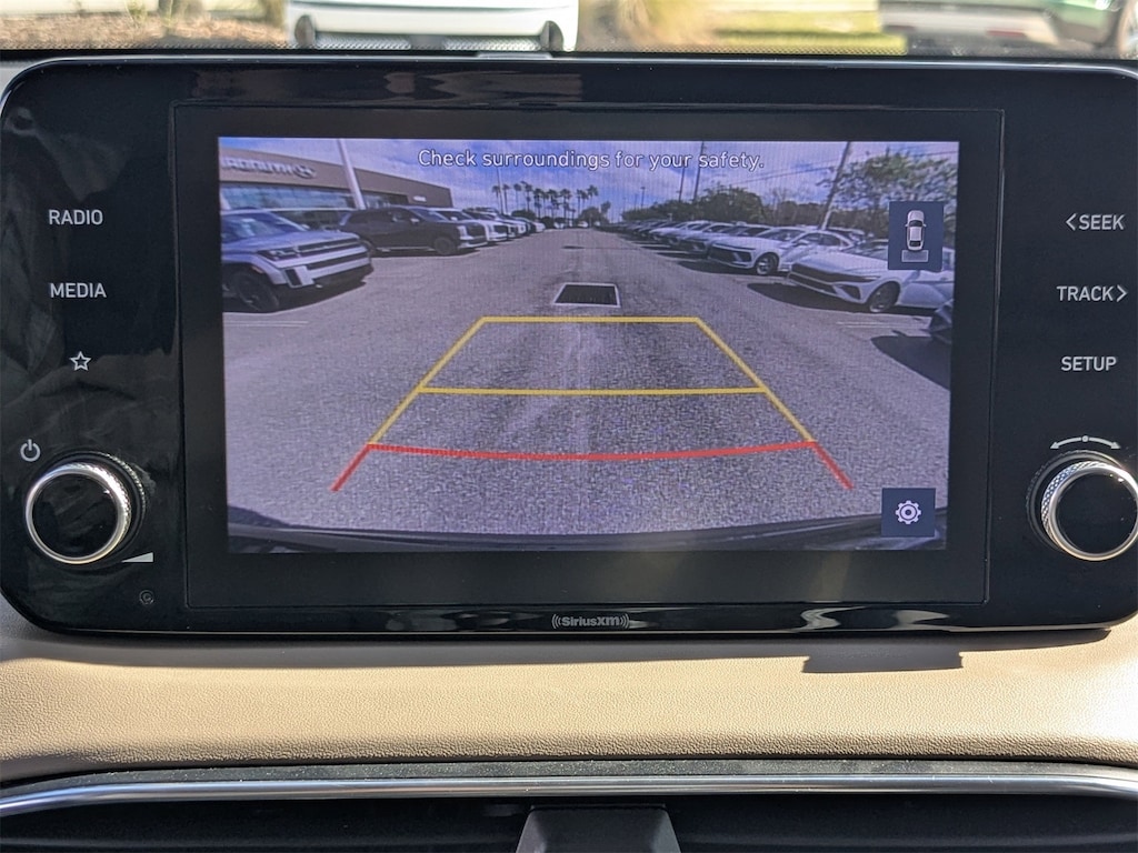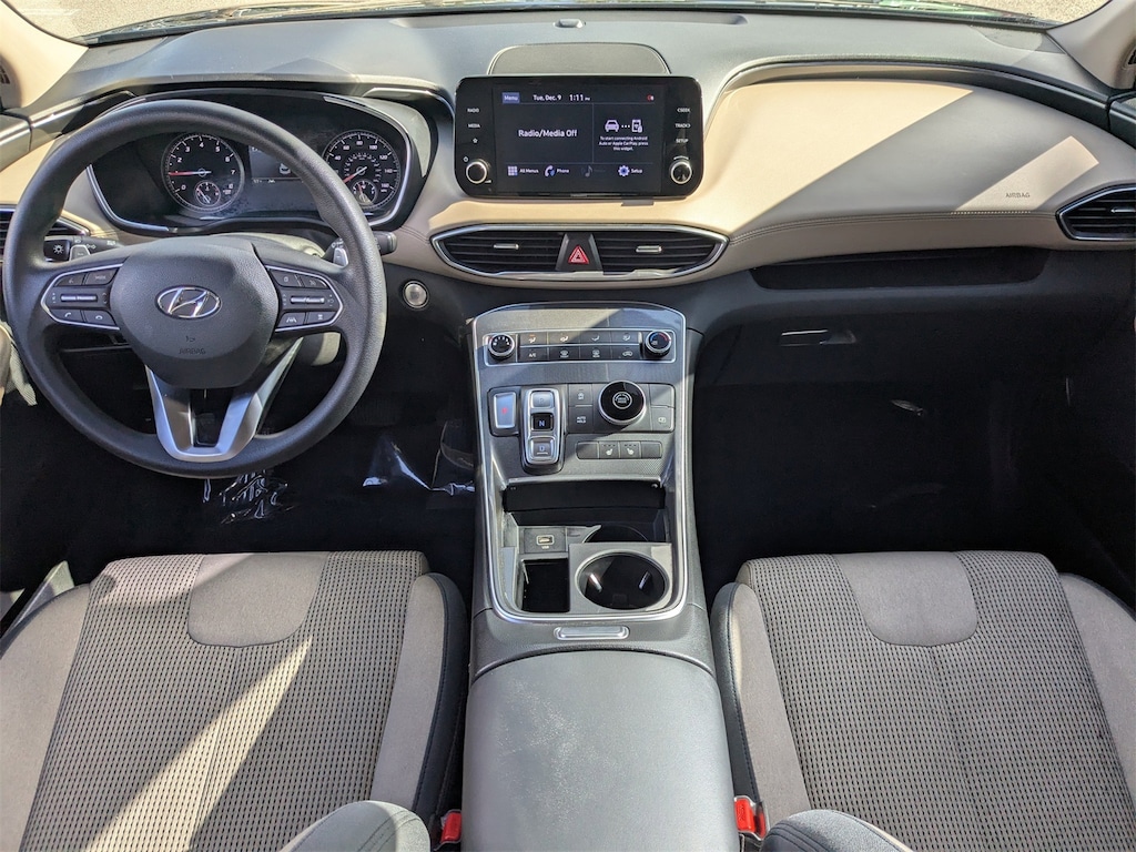 Clean CARFAX. This 2022 Hyundai Santa Fe SEL in Twilight Black features Option Group 01, 18" x 7.5J Alloy Wheels, 4-Wheel Disc Brakes, 6 Speakers, ABS brakes, Air Conditioning, Alloy wheels, AM/FM radio: SiriusXM, Apple CarPlay & Android Auto, Auto High-beam Headlights, Axle Ratio: 3.798, Brake assist, Bumper Applique, Bumpers: body-color, Cargo Net, Carpeted Floor Mats, Delay-off headlights, Driver door bin, Driver vanity mirror, Dual front impact airbags, Dual front side impact airbags, Electronic Stability Control, Emergency communication system, Exterior Parking Camera Rear, Four wheel independent suspension, Front anti-roll bar, Front Bucket Seats, Front Center Armrest, Front reading lights, Fully automatic headlights, Heated door mirrors, Heated Front Bucket Seats, Heated front seats, Illuminated entry, Low tire pressure warning, Mudguards, Occupant sensing airbag, Outside temperature display, Overhead airbag, Overhead console, Panic alarm, Passenger door bin, Passenger vanity mirror, Power door mirrors, Power driver seat, Power steering, Power windows, Radio: AM/FM Display Audio, Rear anti-roll bar, Rear seat center armrest, Rear window defroster, Rear window wiper, Remote keyless entry, Security system, Speed control, Speed-sensing steering, Split folding rear seat, Spoiler, Steering wheel mounted audio controls, Tachometer, Telescoping steering wheel, Tilt steering wheel, Traction control, Trip computer, Variably intermittent wipers, and YES Essentials Stain-Resistant Cloth Seat Trim . Visit our showroom 24/7 at Jenkinshyundaiofjacksonville or call 904-420-3100. FWD