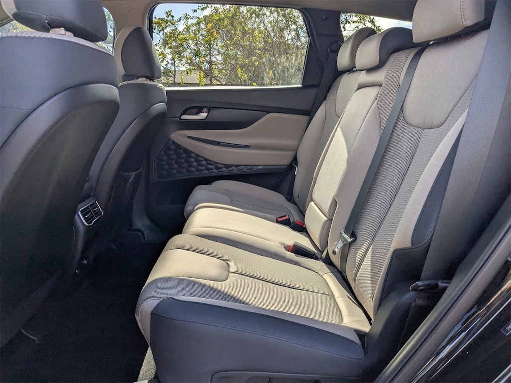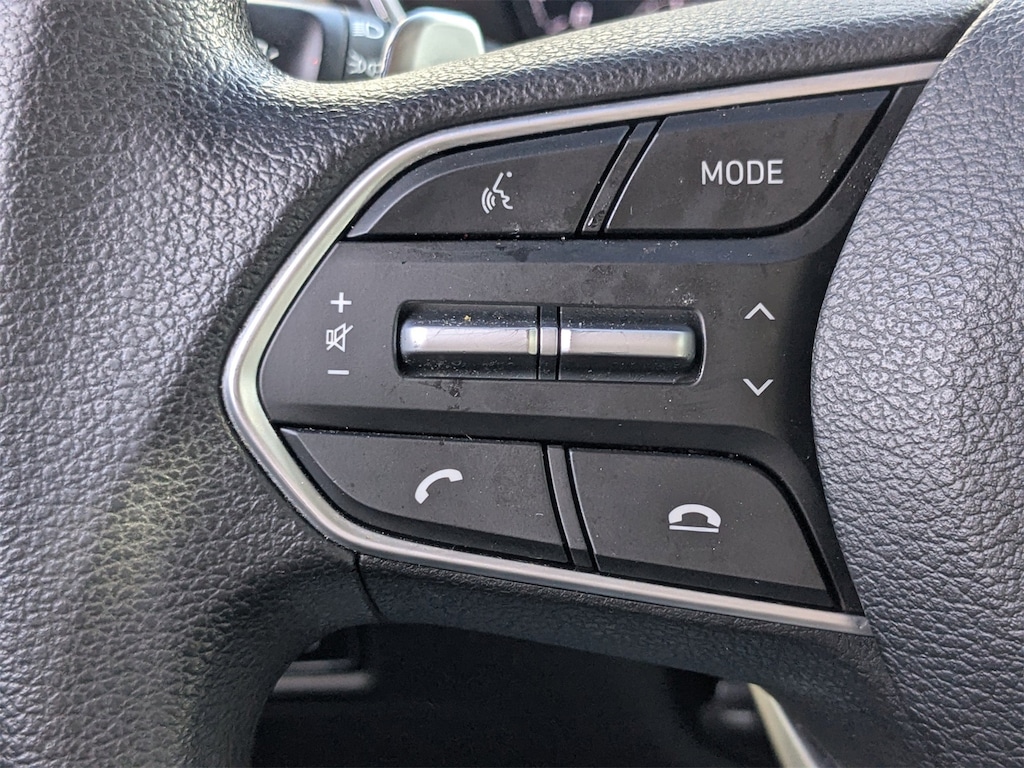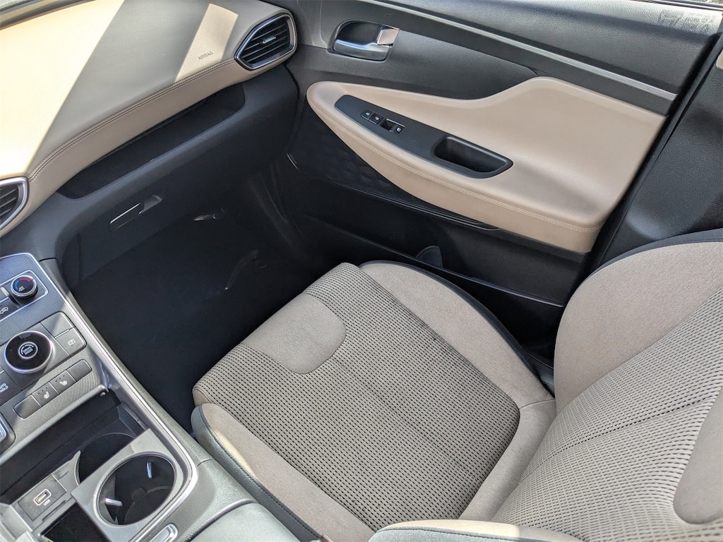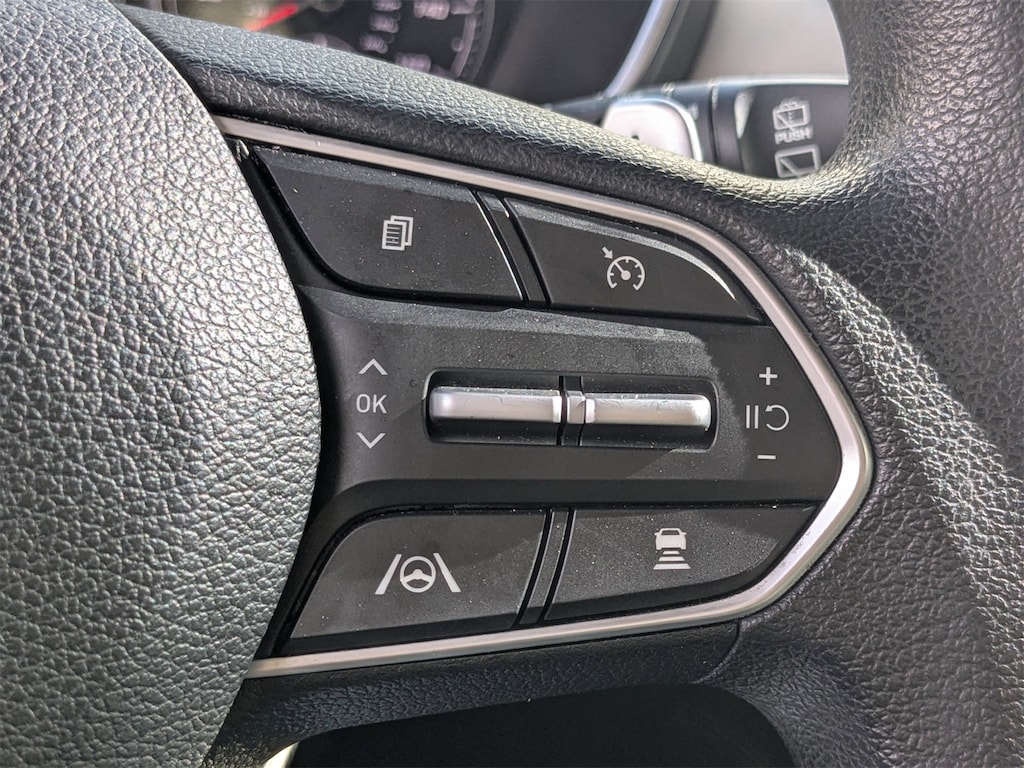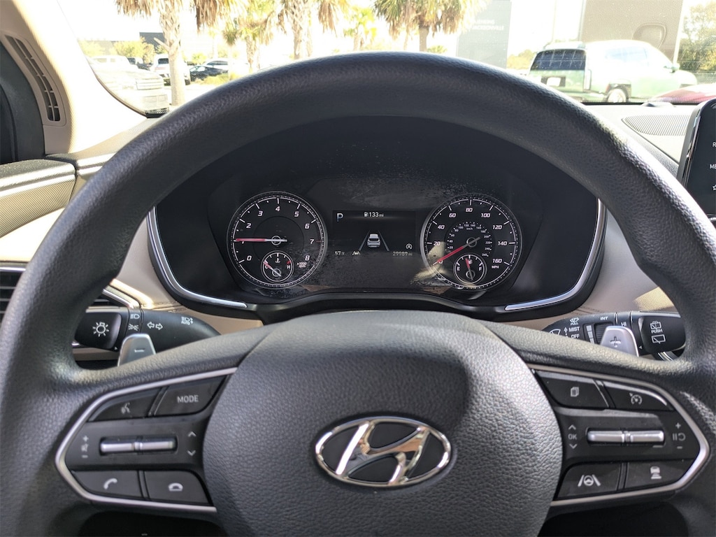 Clean CARFAX. This 2022 Hyundai Santa Fe SEL in Twilight Black features Option Group 01, 18" x 7.5J Alloy Wheels, 4-Wheel Disc Brakes, 6 Speakers, ABS brakes, Air Conditioning, Alloy wheels, AM/FM radio: SiriusXM, Apple CarPlay & Android Auto, Auto High-beam Headlights, Axle Ratio: 3.798, Brake assist, Bumper Applique, Bumpers: body-color, Cargo Net, Carpeted Floor Mats, Delay-off headlights, Driver door bin, Driver vanity mirror, Dual front impact airbags, Dual front side impact airbags, Electronic Stability Control, Emergency communication system, Exterior Parking Camera Rear, Four wheel independent suspension, Front anti-roll bar, Front Bucket Seats, Front Center Armrest, Front reading lights, Fully automatic headlights, Heated door mirrors, Heated Front Bucket Seats, Heated front seats, Illuminated entry, Low tire pressure warning, Mudguards, Occupant sensing airbag, Outside temperature display, Overhead airbag, Overhead console, Panic alarm, Passenger door bin, Passenger vanity mirror, Power door mirrors, Power driver seat, Power steering, Power windows, Radio: AM/FM Display Audio, Rear anti-roll bar, Rear seat center armrest, Rear window defroster, Rear window wiper, Remote keyless entry, Security system, Speed control, Speed-sensing steering, Split folding rear seat, Spoiler, Steering wheel mounted audio controls, Tachometer, Telescoping steering wheel, Tilt steering wheel, Traction control, Trip computer, Variably intermittent wipers, and YES Essentials Stain-Resistant Cloth Seat Trim . Visit our showroom 24/7 at Jenkinshyundaiofjacksonville or call 904-420-3100. FWD
