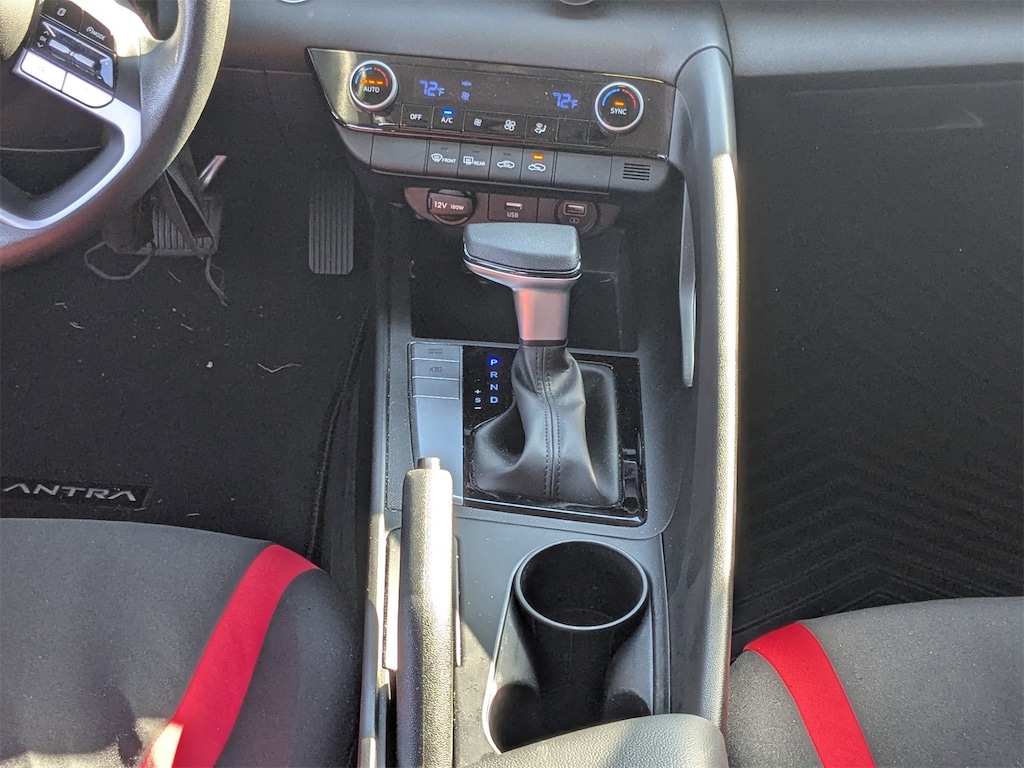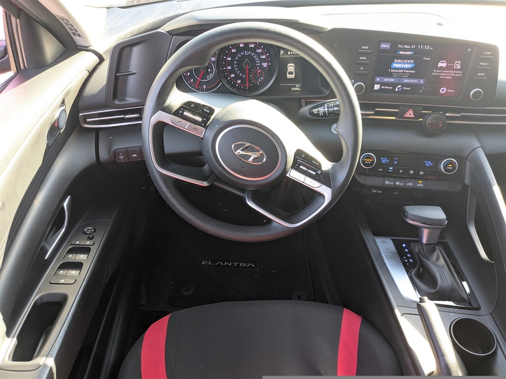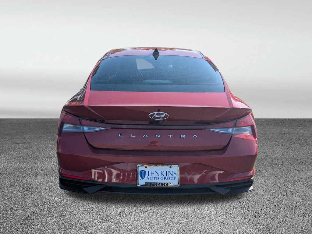 CARFAX One-Owner. Clean CARFAX. This 2023 Hyundai Elantra SEL in Scarlet Red Pearl features Option Group 01, 16" x 6.5J Alloy Wheels, 4-Wheel Disc Brakes, 6 Speakers, ABS brakes, Air Conditioning, Alloy wheels, AM/FM radio: SiriusXM, Apple CarPlay & Android Auto, Auto High-beam Headlights, Automatic temperature control, Brake assist, Bumpers: body-color, Carpeted Floor Mats, Cloth Seat Trim, Delay-off headlights, Driver door bin, Driver vanity mirror, Dual front impact airbags, Dual front side impact airbags, Electronic Stability Control, Emergency communication system: Blue Link Connected Car Service (3-year complimentary subscription), Exterior Parking Camera Rear, First Aid Kit, Front anti-roll bar, Front Bucket Seats, Front Center Armrest, Front dual zone A/C, Front reading lights, Front wheel independent suspension, Fully automatic headlights, Illuminated entry, Low tire pressure warning, Mudguards, Occupant sensing airbag, Outside temperature display, Overhead airbag, Overhead console, Panic alarm, Passenger door bin, Passenger vanity mirror, Power door mirrors, Power steering, Power windows, Radio: AM/FM/HD/SiriusXM Display Audio, Rear Bumper Applique, Rear window defroster, Remote keyless entry, Security system, Speed control, Speed-sensing steering, Steering wheel mounted audio controls, Tachometer, Telescoping steering wheel, Tilt steering wheel, Traction control, Trip computer, and Variably intermittent wipers . Visit our showroom 24/7 at Jenkinshyundaiofjacksonville or call 904-420-3100. FWD