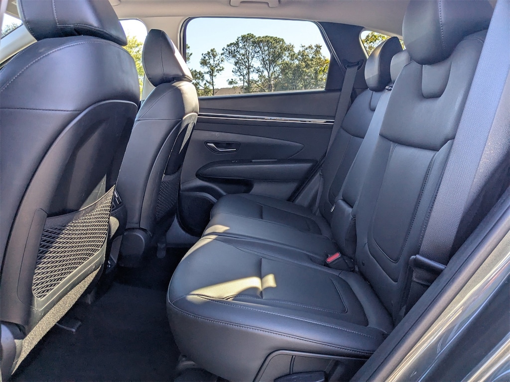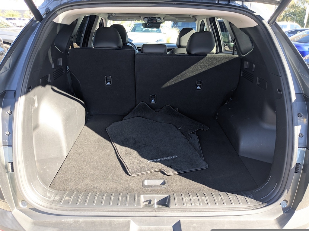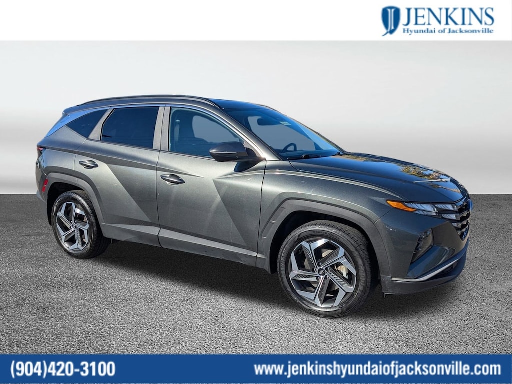 Clean CARFAX. This 2023 Hyundai Tucson SEL in Amazon Gray features Convenience Package (10.25" Digital Instrument Cluster, Auto-Dimming Interior Mirror w/Homelink, Dual Automatic Temperature Control, H-Tex Seat Trim, Leather-Wrapped Shift Knob, Leather-Wrapped Steering Wheel, LED Interior Lights (Room, Map), Option Group 02, Power Sunroof, Ultrasonic Rear Occupant Alert, and Wheels: 19" x 7.5J" Machine-Face Finish Alloy), 3.648 Axle Ratio, 4-Wheel Disc Brakes, 6 Speakers, ABS brakes, Air Conditioning, Alloy wheels, AM/FM radio: SiriusXM, Apple CarPlay & Android Auto, Auto High-beam Headlights, Brake assist, Bumpers: body-color, Cargo Net, Cargo Tray, Carpeted Floor Mats, Delay-off headlights, Driver door bin, Driver vanity mirror, Dual front impact airbags, Dual front side impact airbags, Electronic Stability Control, Emergency communication system: Blue Link Connected Car Service (3-year complimentary subscription), First Aid Kit, Four wheel independent suspension, Front and Rear Mudguards, Front anti-roll bar, Front Bucket Seats, Front Center Armrest, Front reading lights, Fully automatic headlights, Heated door mirrors, Heated Front Bucket Seats, Heated front seats, Illuminated entry, Low tire pressure warning, Occupant sensing airbag, Outside temperature display, Overhead airbag, Overhead console, Panic alarm, Passenger door bin, Passenger vanity mirror, Power door mirrors, Power driver seat, Power Liftgate, Power steering, Power windows, Radio data system, Radio: AM/FM/HD/SiriusXM Audio System, Rear anti-roll bar, Rear seat center armrest, Rear window defroster, Rear window wiper, Remote keyless entry, Roof rack: rails only, Security system, Speed control, Split folding rear seat, Spoiler, Stain & Odor Resistant Cloth Seat Trim, Steering wheel mounted audio controls, Tachometer, Telescoping steering wheel, Tilt steering wheel, Traction control, Trip computer, Turn signal indicator mirrors, Variably intermittent wipers, and Wheels: 17" x 7.0J" Alloy . Visit our showroom 24/7 at Jenkinshyundaiofjacksonville or call 904-420-3100. AWD