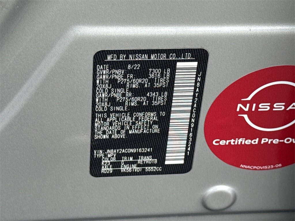 Certified. Brilliant Silver Metallic 2022 Nissan Armada SV Appearance Package RWD 7-Speed Automatic 5.6L V8 DOHC 32V LEV3-ULEV125 400hp Jenkins has been doing business for over 50 years and we appreciate your business! Our used cars undergo an extensive Detail and Reconditioning Process, and are thoroughly inspected to meet the criteria for our exclusive warranty. Buy with confidence at Jenkins Nissan of Homosassa! We spend an average of $2779 in Detail and Reconditioning on every used car. The Reconditioning and Maintenance Repair History is Available Upon Request. We don't just inspect, we fix :)