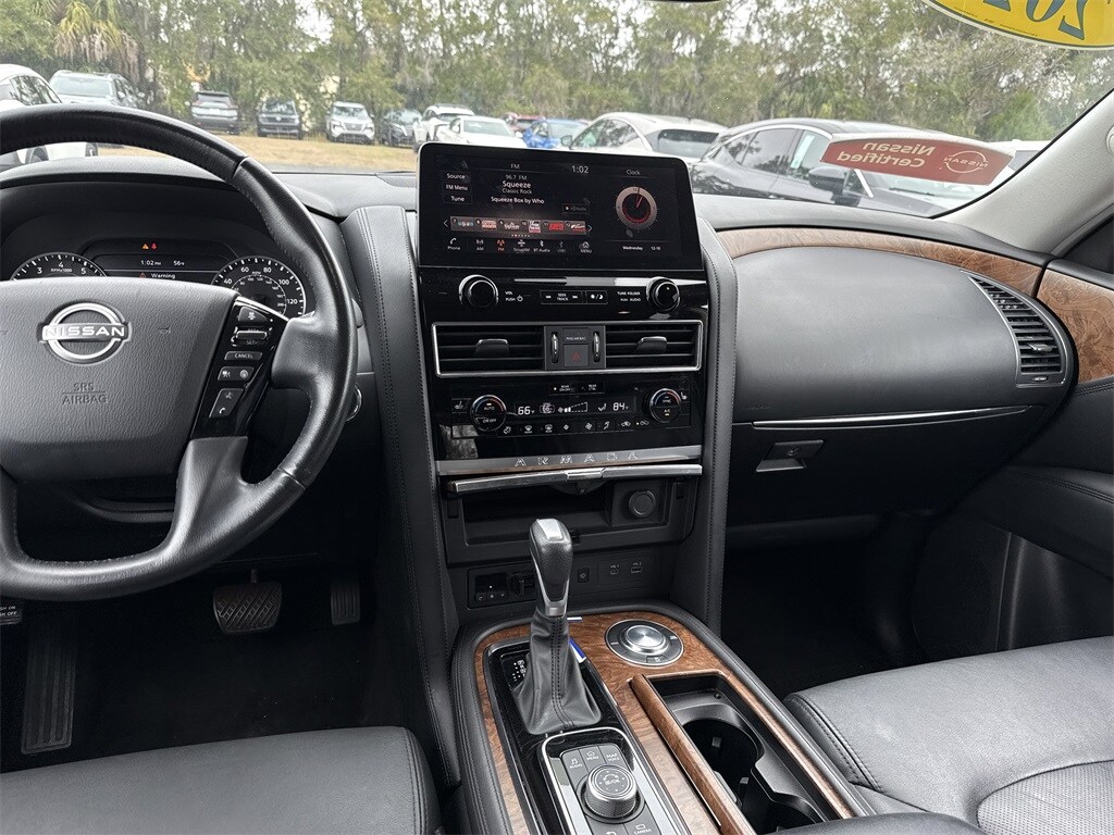 Certified. Super Black 2023 Nissan Armada SL RWD 7-Speed Automatic 5.6L V8 DOHC 32V LEV3-ULEV125 400hp Jenkins has been doing business for over 50 years and we appreciate your business! Our used cars undergo an extensive Detail and Reconditioning Process, and are thoroughly inspected to meet the criteria for our exclusive warranty. Buy with confidence at Jenkins Nissan of Homosassa! We spend an average of $2779 in Detail and Reconditioning on every used car. The Reconditioning and Maintenance Repair History is Available Upon Request. We don't just inspect, we fix :)
