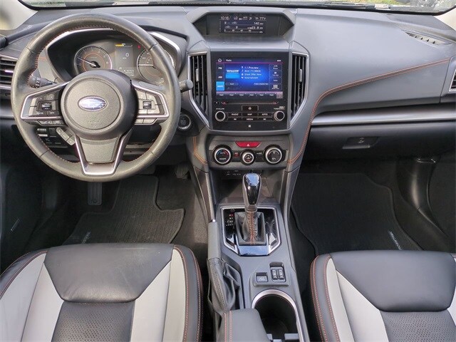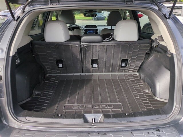 This vehicles comes equipped with Moonroof & Navigation & harman/kardon Audio (harman/kardon Speaker System, Power Moonroof, and Radio: Subaru STARLINK 8.0" Multimedia Nav System), Subaru Certified Pre-Owned Certified, 3.70 Axle Ratio, 4-Wheel Disc Brakes, 6 Speakers, ABS brakes, Air Conditioning, Alloy wheels, AM/FM radio: SiriusXM, Anti-whiplash front head restraints, Auto High-beam Headlights, Auto-Dimming Mirror w/Compass & HomeLink, Automatic temperature control, Brake assist, Bumpers: body-color, Cargo Net, CD player, Driver door bin, Driver vanity mirror, Dual front impact airbags, Dual front side impact airbags, Electronic Stability Control, Emergency communication system: STARLINK Safety and Security (Subscription Required), Exterior Parking Camera Rear, Footwell Illumination Kit, Four wheel independent suspension, Front anti-roll bar, Front Bucket Seats, Front Center Armrest, Front fog lights, Front reading lights, Fully automatic headlights, Heated door mirrors, Heated Front Bucket Seats, Heated front seats, Illuminated entry, Knee airbag, Leather-Trimmed Upholstery, Low tire pressure warning, Occupant sensing airbag, Outside temperature display, Overhead airbag, Overhead console, Panic alarm, Passenger door bin, Passenger vanity mirror, Power door mirrors, Power driver seat, Power steering, Power windows, Radio data system, Radio: Subaru STARLINK 8.0" Multimedia Plus System, Rear anti-roll bar, Rear Bumper Cover, Rear seat center armrest, Rear window defroster, Rear window wiper, Remote keyless entry, Security system, Speed control, Speed-sensing steering, Split folding rear seat, Spoiler, STARLINK/Apple CarPlay/Android Auto, Steering wheel mounted audio controls, Tachometer, Telescoping steering wheel, Tilt steering wheel, Traction control, Trip computer, Turn signal indicator mirrors, Variably intermittent wipers, and Wheels: 18" x 7.0J Alum Alloy Blk w/Machine Finish . 27/34 City/Highway MPG