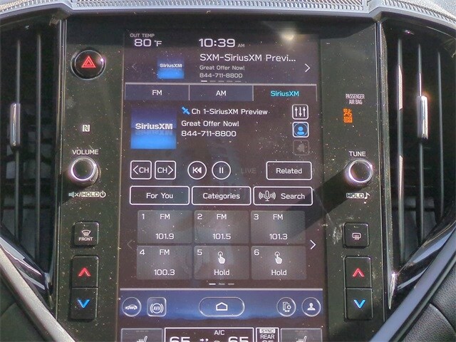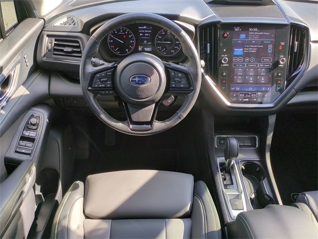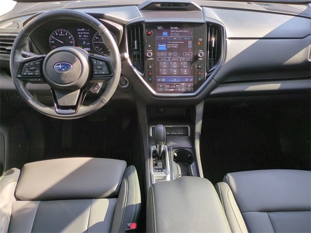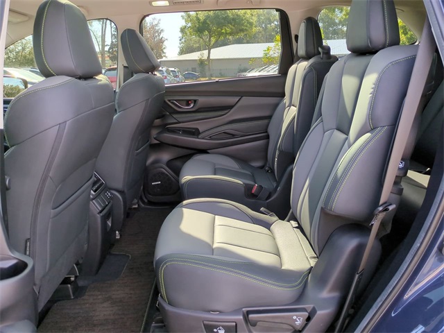 This vehicles comes equipped with Popular Package Onyx (All-Weather Floor Liners, Auto-Dimming Exterior Mirror w/Approach Light, Black Chrome Rear Bumper Cover, Cargo Tray, LED Upgrade, and Splash Guards), Standard Model, Subaru Certified Pre-Owned Certified, 14 Speakers, 3rd row seats: bench, 4-Wheel Disc Brakes, ABS brakes, Air Conditioning, Alloy wheels, AM/FM radio: SiriusXM, Auto High-beam Headlights, Auto-dimming Rear-View mirror, Automatic temperature control, Axle Ratio: 4.44, Brake assist, Bumpers: body-color, Compass, Delay-off headlights, Driver door bin, Driver vanity mirror, Dual front impact airbags, Dual front side impact airbags, Electronic Stability Control, Emergency communication system: STARLINK Safety and Security (Subscription Required), Exterior Parking Camera Rear, Four wheel independent suspension, Front anti-roll bar, Front Bucket Seats, Front Center Armrest, Front dual zone A/C, Front fog lights, Front reading lights, Fully automatic headlights, Garage door transmitter: HomeLink, harman/kardon® Speakers, Heated door mirrors, Heated Front Bucket Seats, Heated front seats, Heated rear seats, Heated steering wheel, HVAC memory, Illuminated entry, Knee airbag, Leather Shift Knob, Leather steering wheel, Low tire pressure warning, Memory seat, Navigation System, Occupant sensing airbag, Outside temperature display, Overhead airbag, Overhead console, Panic alarm, Passenger door bin, Passenger vanity mirror, Power door mirrors, Power driver seat, Power Liftgate, Power moonroof, Power passenger seat, Power steering, Power windows, Radio data system, Radio: Subaru STARLINK 11.6" Multimedia Nav System, Rear air conditioning, Rear anti-roll bar, Rear reading lights, Rear window defroster, Rear window wiper, Reclining 3rd row seat, Remote keyless entry, Security system, Speed control, Speed-sensing steering, Split folding rear seat, Spoiler, STARLINK/Apple CarPlay/Android Auto, StarTex Upholstery, Steering wheel mounted audio controls, Tachometer, Telescoping steering wheel, Tilt steering wheel, Traction control, Trip computer, Turn signal indicator mirrors, Variably intermittent wipers, and Wheels: 20" x 7.5 J Aluminum Alloy w/Black Finish .