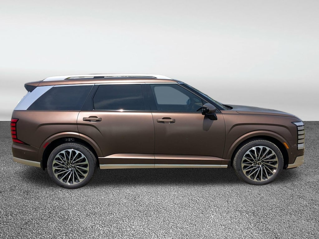The price does not include tax, tag, license, an electronic filing fee of $449.00**, a private tag agency fee of $199.00**, and a predelivery service charge of $1199.00** **This charge represents costs and profit to the dealer for items such as inspecting, cleaning, and adjusting vehicles, as well as preparing documents related to the sale. * EPA-estimate metric: these are contingent on ideal conditions within a lab. Real-world situations such as carrying passengers or cargo, using climate control, driving style, and ambient temperatures can affect actual metrics. 19/25 City/Highway MPG Earthy Brass Matte 2026 Hyundai Palisade Calligraphy FWD 8-Speed Automatic V6