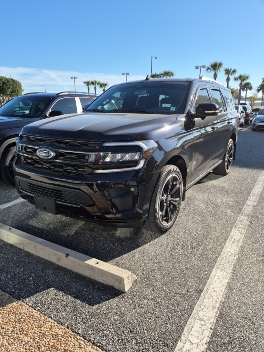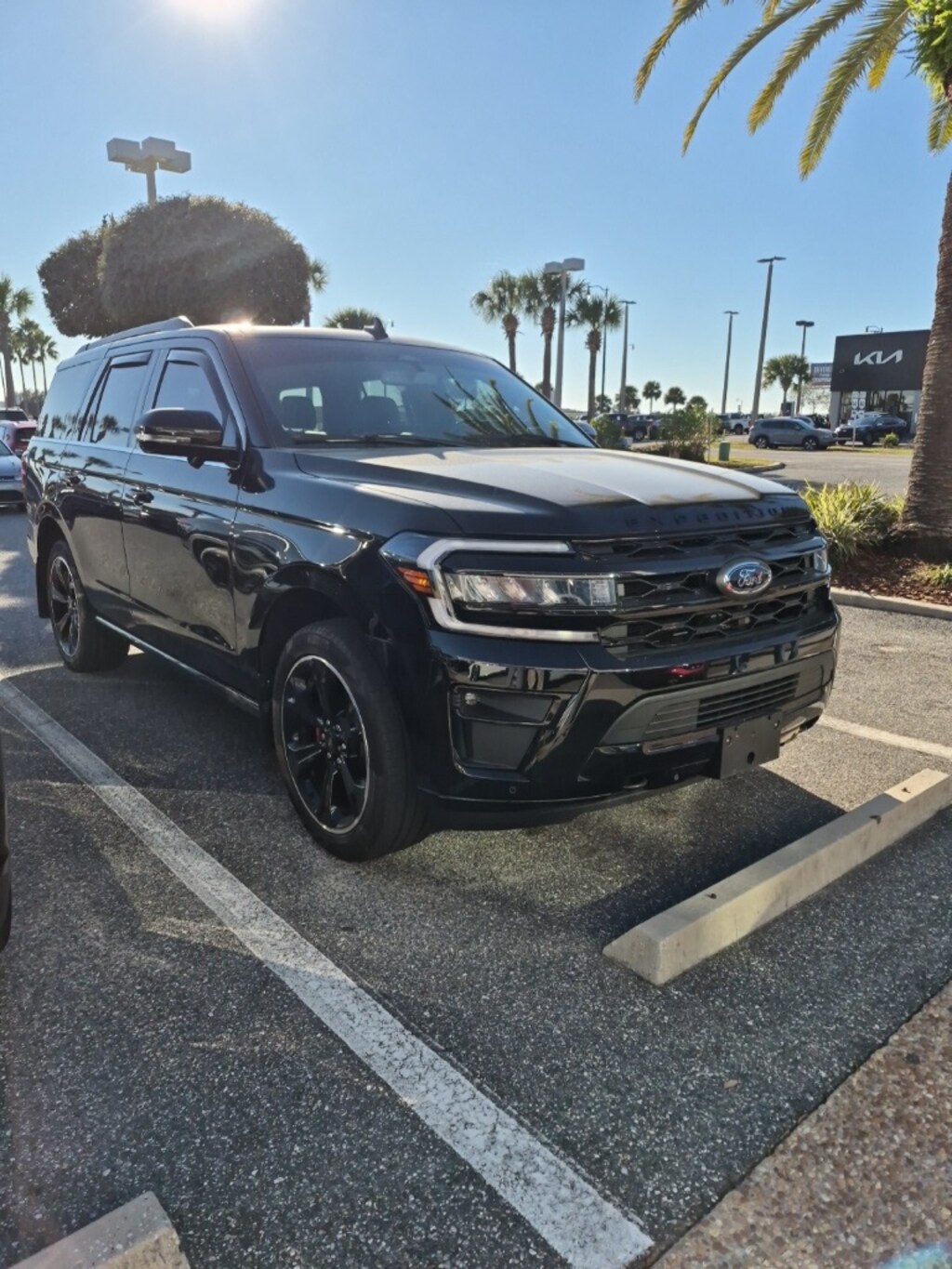 The price does not include tax, tag, license, an electronic filing fee of $449.00**, a private tag agency fee of $199.00**, and a predelivery service charge of $1199.00** **This charge represents costs and profit to the dealer for items such as inspecting, cleaning, and adjusting vehicles, as well as preparing documents related to the sale. * EPA-estimate metric: these are contingent on ideal conditions within a lab. Real-world situations such as carrying passengers or cargo, using climate control, driving style, and ambient temperatures can affect actual metrics. 16/22 City/Highway MPG One Owner!, Clean CarFax!, Expedition Limited STEALTH PERFORMANCE EDITION, 4D Sport Utility, 3.5L V6, 10-Speed Automatic, 4WD, Black Metallic, Black Onyx Leather, 12 Speakers, 15.5" LCD Capacitive Touchscreen, 1st & 2nd Row Floor Mats w/Logo, 26mm Engine Radiator, 360-Degree Camera w/Trailer Reverse Guidance, Active Noise Control, Auto High-beam Headlights, Automatic temperature control, Black Headlamp and Fog Lamp Bezels, Black Limited Tailgate Badge, Black Roof Rack Side Rails, Body Color Door Handles, Brake assist, Delay-off headlights, Dual Exhaust System, Ebony Black Bar and Mesh Grille, Ebony Black Power Deployable Running Boards, Ebony Black Tailgate Applique, Electronic Stability Control, Emergency communication system: SYNC 4 911 Assist, Equipment Group 304A Stealth Performance Package, Expedition Lettering on Hood, Front dual zone A/C, Front fog lights, Front Tow Hooks, Fully automatic headlights, Garage door transmitter, Heated & Ventilated Leather Front Captain's Chairs, Heated steering wheel, Heated/Ventilated Lthr Front Captain's Chairs (A), Heavy-Duty Trailer Tow Package, Illuminated entry, Integrated Trailer Brake Controller, LED Taillamp w/Black Bezels, Memory seat, Panic alarm, Pedal memory, Power Liftgate, Power-Folding Sideview Mirrors w/Autofold, Pro Trailer Backup Assist, Radio: B&O Unleashed Sound System by Bang & Olufsen, Rain sensing wipers, Rear air conditioning, Red Brake Calipers, Remote keyless entry, Security system, SiriusXM w/360L, Sport Center Console, Sport Tuned Suspension, Stealth Performance Edition Package, Steering wheel memory, SYNC 4 w/Enhanced Voice Recognition, Ventilated front seats, Wheels: 22" Premium Black-Painted Aluminum.