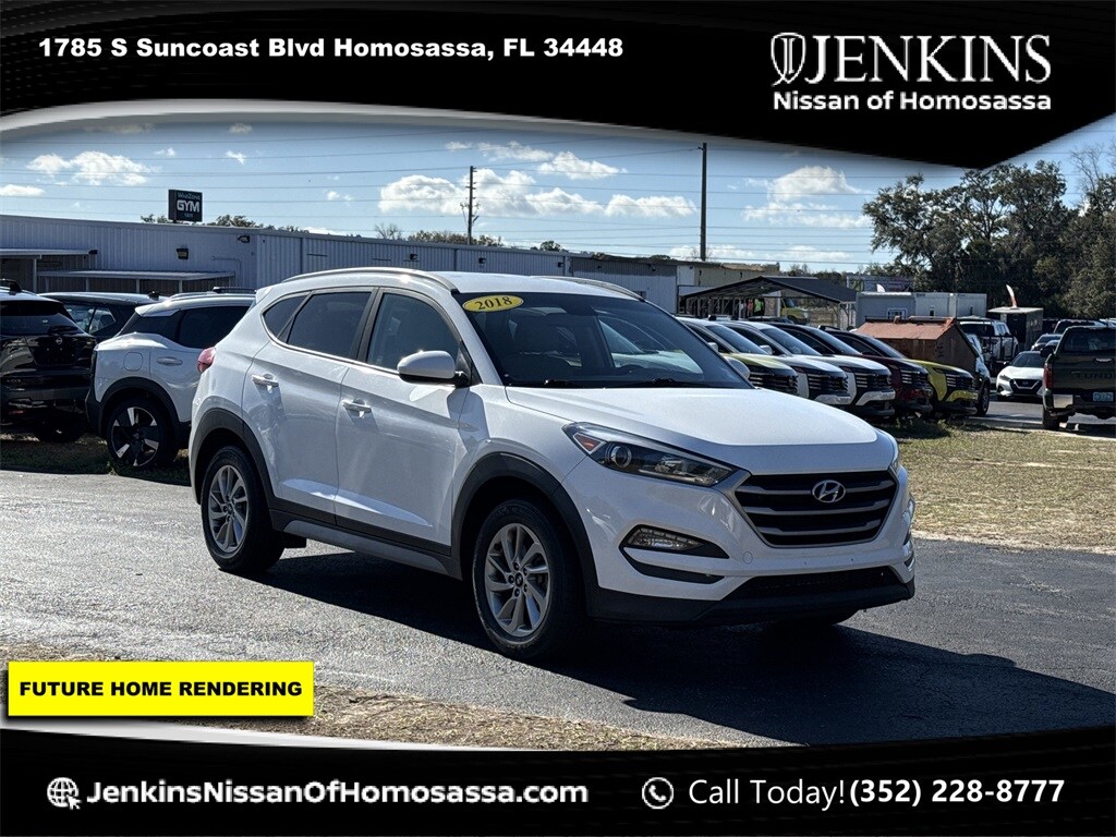 Dazzling White 21/26 City/Highway MPG 2018 Hyundai Tucson SEL AWD 6-Speed Automatic with Shiftronic 2.0L DOHC Jenkins has been doing business for over 50 years and we appreciate your business! Our used cars undergo an extensive Detail and Reconditioning Process, and are thoroughly inspected to meet the criteria for our exclusive warranty. Buy with confidence at Jenkins Nissan of Homosassa! We spend an average of $2779 in Detail and Reconditioning on every used car. The Reconditioning and Maintenance Repair History is Available Upon Request. We don't just inspect, we fix :)